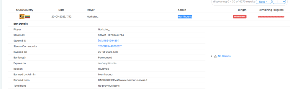 Sveiki, ka tik gavau perma bana, visiskai uz nieka. Tiesiog tapinau su eagle ir iskart uzbanino adminas Marrihuana, nezinau matete ar ne bet netgi chate daug kas raso kad sis adminas banina uz nieka, tikrai nera vertas admino pareigu