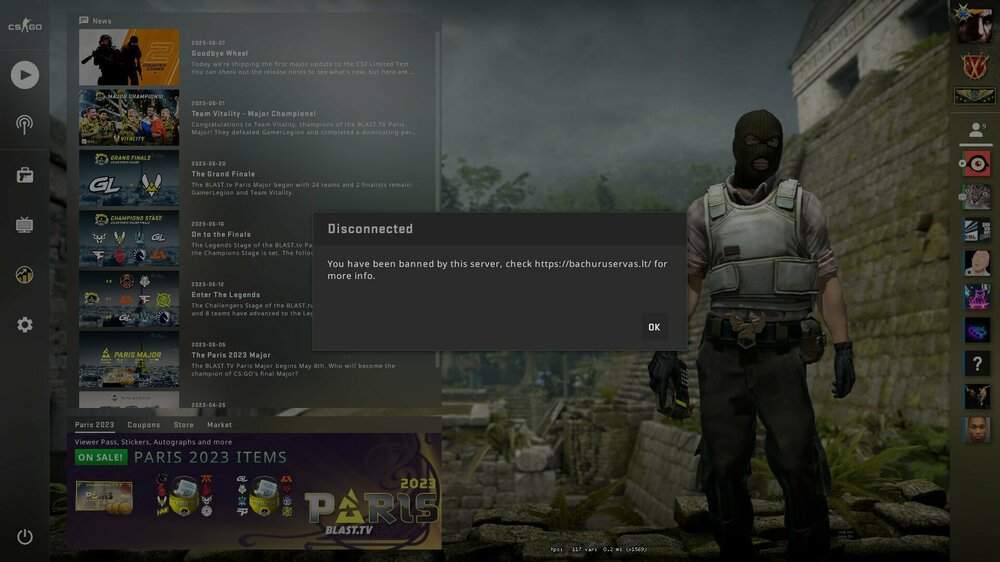 Jūsų Nick bei steam ID - painmaker https://steamcommunity.com/id/pmkr/Kada, kuriam mape ir kuriame serve nubaudė? ( PUBLIC, RETAKES ir t.t) - publicKą darėte prieš gaunant baną - sulosiau kelis mapus ir atsijungiau, dabar nebegaliu prisijungtKuris admin nubaudę ? - neisivaizduoju