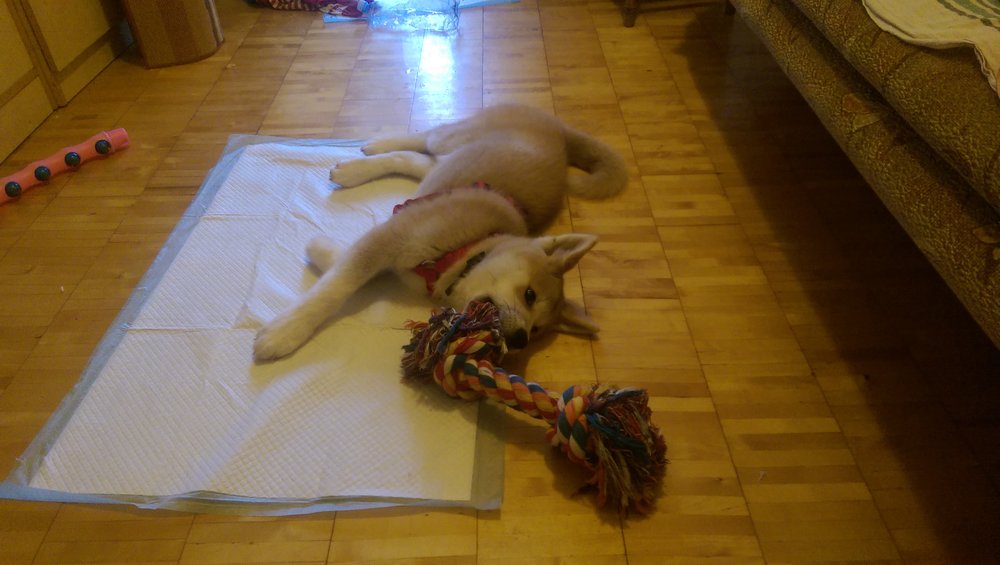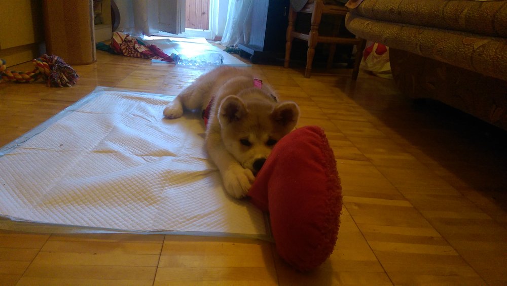 Vo, kaip mano Čika užaugo. Dydžiu buvo sulig jos žaislas. Būdama maža labai patikdavo jai įsibėgėt ir čiuožti ant palučių :D :D Veislė: Akita Inu