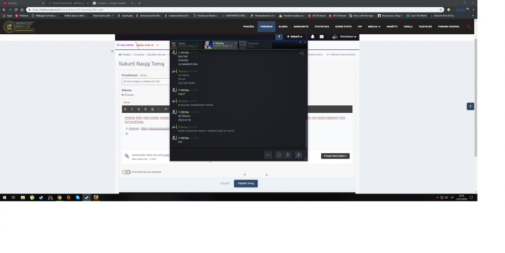 1. Nick zaidime bei amzius. Rivenas - 18 metų.2. Jusu STEAM_ID STEAM_0:0:1465048543. Trumpai papasakokite apie save ir kodel norite tapti Adminu? Gyvenu Lietuvoje ir ieškau kokio nors užsiėmimo kur galėčiau atiduoti savo jėgas. Esu pareigingas ir jei imuosi ko nors tai visada tai padarau. Noriu, kad serveryje būtų kuo mažiau cheaterių, problemų ir kad žaidėjai galėtų žaisti netrukdomi kitų. Prižiūrėti serverį, kad ir nauji, ir esami žaidėjai sutartu. Gerinti bachūrų servo vardą. Taip pat noriu labiau padėti naujiems žaidėjams pritapti ir galbūt tapti nuolatiniais žaidėjais. (Jei tapsiu adminu padinsiu aktyvumą serveryje.)4. Ar esate kada nors buve administratoriumi? NE.5. Kokiame serveryje buvote?6. Kiek laiko praleidziate musu serveriuose? Darbo dienomis praleidžiu 2-3h. Savaitgaliais 4-5h į dieną. Kartais skiriu mažiau laiko, dėl gyvenimo problemų.7. Kurio serverio administratoriumi norite tapti (#1, #2, dm servas) BACHURU SERVAS.EU ||CS:GO||#28. Ka darytumete, jeigu zaidejes (galbut netgi draugas) nusizengtu taisyklems? Draugai ar ne draugai vistiek baudžiami taip pat.9. Kaip dar zadate prisideti prie projekto be tvarkos priziurejimo? (forum priziurejimas, patirtis gaudant cheatus, demo stebejimas, retkarčiai donate, nebent būnu ne prie pinigo, tačiau jei į tai įsitrauksiu būtinai paremsiu!)10. Jeigu jus rekomenduoja kitas administratorius, cia galite parasyti jo nick, arba jis gali pats parasyti +rep temoje. Ko daugiau balsu surinksite, to didesnis sansas jums tapti administratoriais.