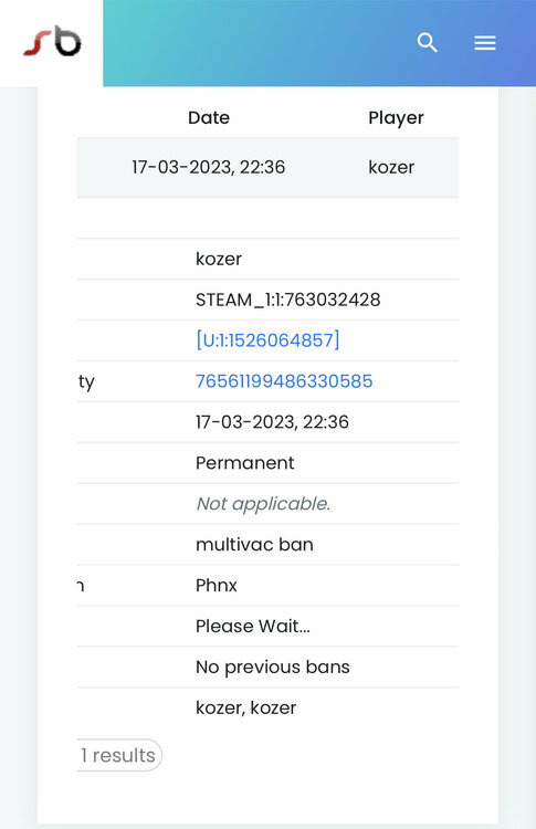 Tikrai ne jis gavo vac ban ant seno acc, užstoju žmogų šiuo atveju. Tikrai pažįstamas veidas, daug su juo žaidžiau kol nepadarė pertraukos.