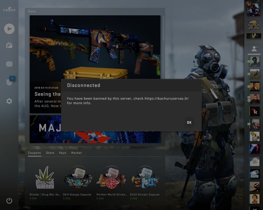 Sveiki. Norėjau paklausti, už ką gavau ban? Ta prasme, lošiu lošiu ir bam disconnectas. Su niekuom nesipykau, kalbejau minimaliai, per sienas toli gražu nevedžiojau ir tt.