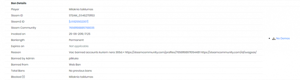 Temos pavadinimas: Gavau Ban/Gag/MuteJūsų Nick bei steam ID - Milaknio Taiklumas https://steamcommunity.com/id/milaknisKada, kuriam mape ir kuriame serve nubaudė? - [LT] BACHURU SERVAS.EU ||CS:GO||#2 Tuo metu nežaidžiau.Kuris admin nubaudė ( jeigu žinote ) ? - pilkiukeAprašykite už ką adminas uždėjo bausmę ? - Pats nelabai suprantu