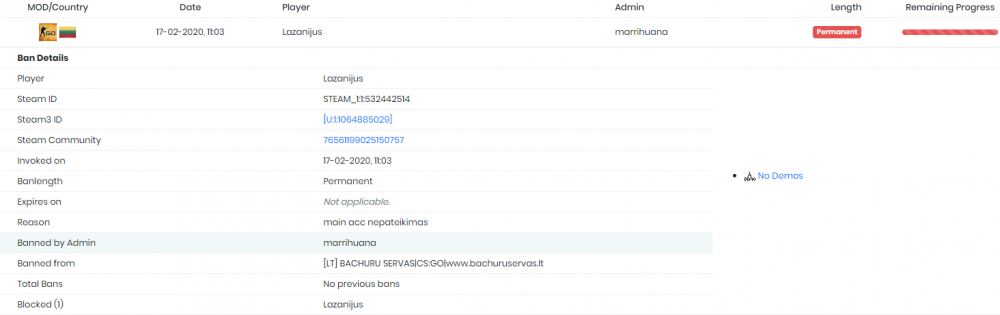 Gavau BanJūsų Nick bei steam ID - Lazanijus, STEAM_1:1:532442514Kada, kuriam mape ir kuriame serve nubaudė? ( 1, 2 DM ) - 1Ką darėte prieš gaunant baną - žaidžiau serveryje, turėjau daugiausiai killųKuris admin nubaudę ? - marrihuana